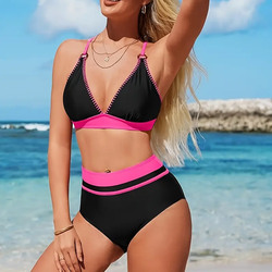 Rắn Màu Bikini Set Cho Phụ Nữ Sexy Ruched Đồ Bơi In Chất Lượng Cao nhất Mùa Hè Màu Hồng Màu Sắc Tương Phản Bộ Rửa